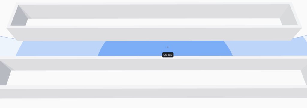 - El punto etiquetado como G6 180 representa la cámara